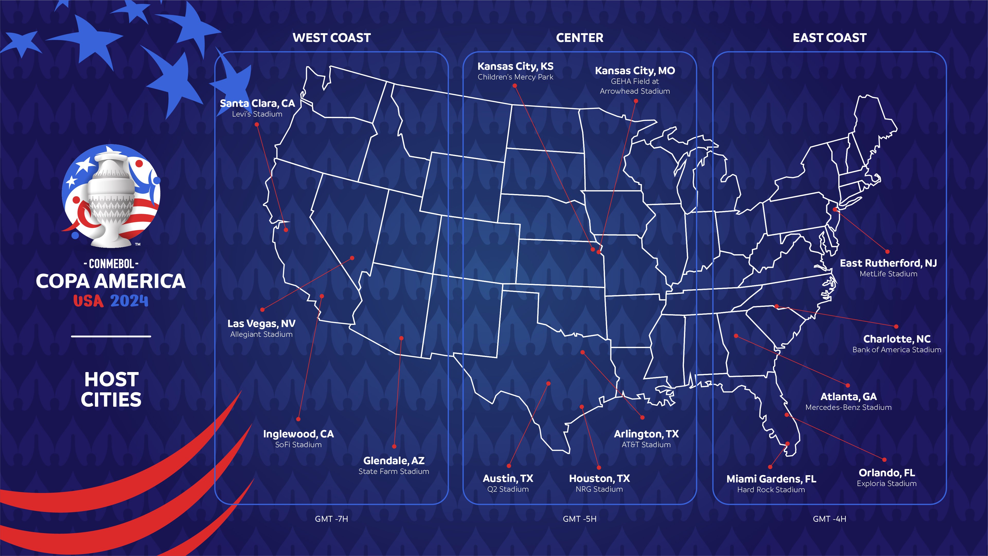 SANTA CLARA, Calif. - CONMEBOL announced the 14 host cities, the stadiums and the match schedule that will be part of the 48th edition of the CONMEBOL Copa América™, which will be held in the United States from June 20 to July 14, 2024.